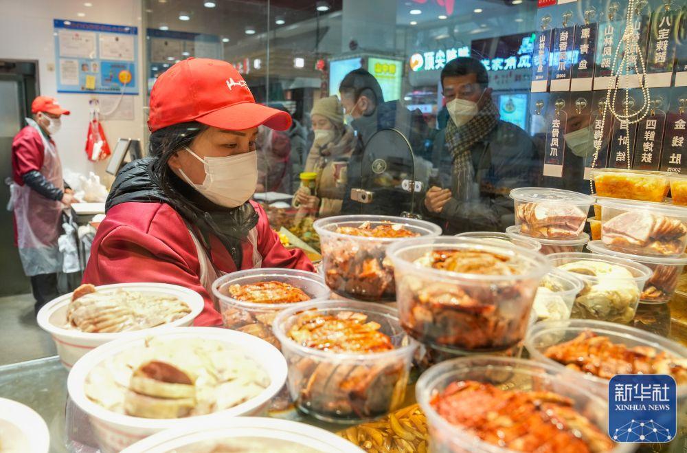 1月24日,在上海徐家汇商圈的一家商店内,店员在为顾客准备美食。新华社记者 丁汀 摄